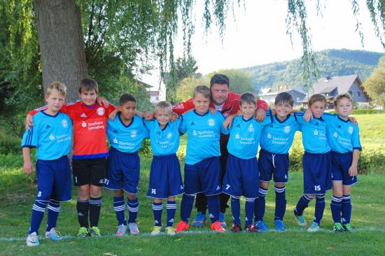 Die im letzten Jahr spielenden F-Junioren dürfen nun auf dem noch ungewohnten Kleinfeld über die ganze Sportplatzbreite in neuer Mannschaftsstärke (Torwart plus sieben Feldspieler) ran und sich zudem an eine längere Spielzeit über 2*25 Minuten anstelle der gewohnten Turnierspiele über jeweils 2*8 Minuten gewöhnen. Die 9-10-Jährigen werden weiter von Danny Heyder trainiert, der von Lukas Müller unterstützt wird. Nach dem Weggang von Torjäger Fritz Fiedler (FC Coburg) und Ruben Sesselmann (SV Steinach) muss die Verantwortung wieder auf mehrere Schultern verteilt werden. Die Kinder erwartet eine spannende und lehrreiche Saison, in die unser junger Jahrgang ganz ohne Druck gehen kann. Unsere Mannschaft spielt im Herbst in der Qualifikationsgruppe Ost mit folgenden Mannschaften: SV 08 Steinach, 1. FC Sonneberg 04, SC 06 Oberlind, SV Isolator Neuhaus -Schierschnitz I + II. update 5.10.2015: Die Quali wurde auf Platz 4 beendet. Nun geht es in der Kreisliga mit Hin- und Rückrunde weiter. Anbei die Staffeleinteilung: E-Junioren, Kreisliga: SV Falke Sachsenbrunn, FSV 06 Eintracht Hildburghausen II, SV Eintracht Heldburg, SG Gleichamberg/ Haina, SV 08 Steinach, TSV Germania Sonneberg-West, 1. FC Sonneberg 04 II, SG Lauscha/ Neuhaus Talente in den Geburtsjahrgängen 2005-2006 können jederzeit ein Schnuppertraining besuchen.