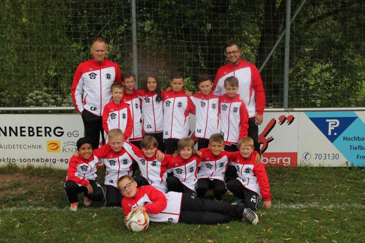 Die E-Jugend besteht in der neuen Saison aus den 9-10-jährigen Kickern der letztjährigen E2-/F-Jugend, die unter der fachkundigen Anleitung von Christian Poganiatz trainieren. Das Training findet parallel zu den Terminen der F-/G-Jugend statt, so dass deren Übungsleiter Fabian Truthän und Patrick Bauer bei Bedarf einspringen können.