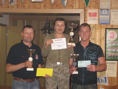Die beiden Hauptorganisatoren beglückwünschten danach alle Finalteilnehmer und überreichten die drei Wanderpokale an die Erstplazierten. Hierfür geht ein Dankeschön an die Firma Nussco! Behalten dagegen dürfen die Sieger die Gutscheine der Firmen Friedel, IMO-Autopflege und Rhodos, an die ebenfalls der Dank der Kartfreunde geht. Ein gelungenes Turnier (Danke Peter und Fisch), zu dem auch Regina Hein mit gewohnt guter Verpflegung beitrug. Von allen Teilnehmern wurde einhellig der Wunsch nach einer Wiederholung des Turniers im Jahre 2007 geäußert.