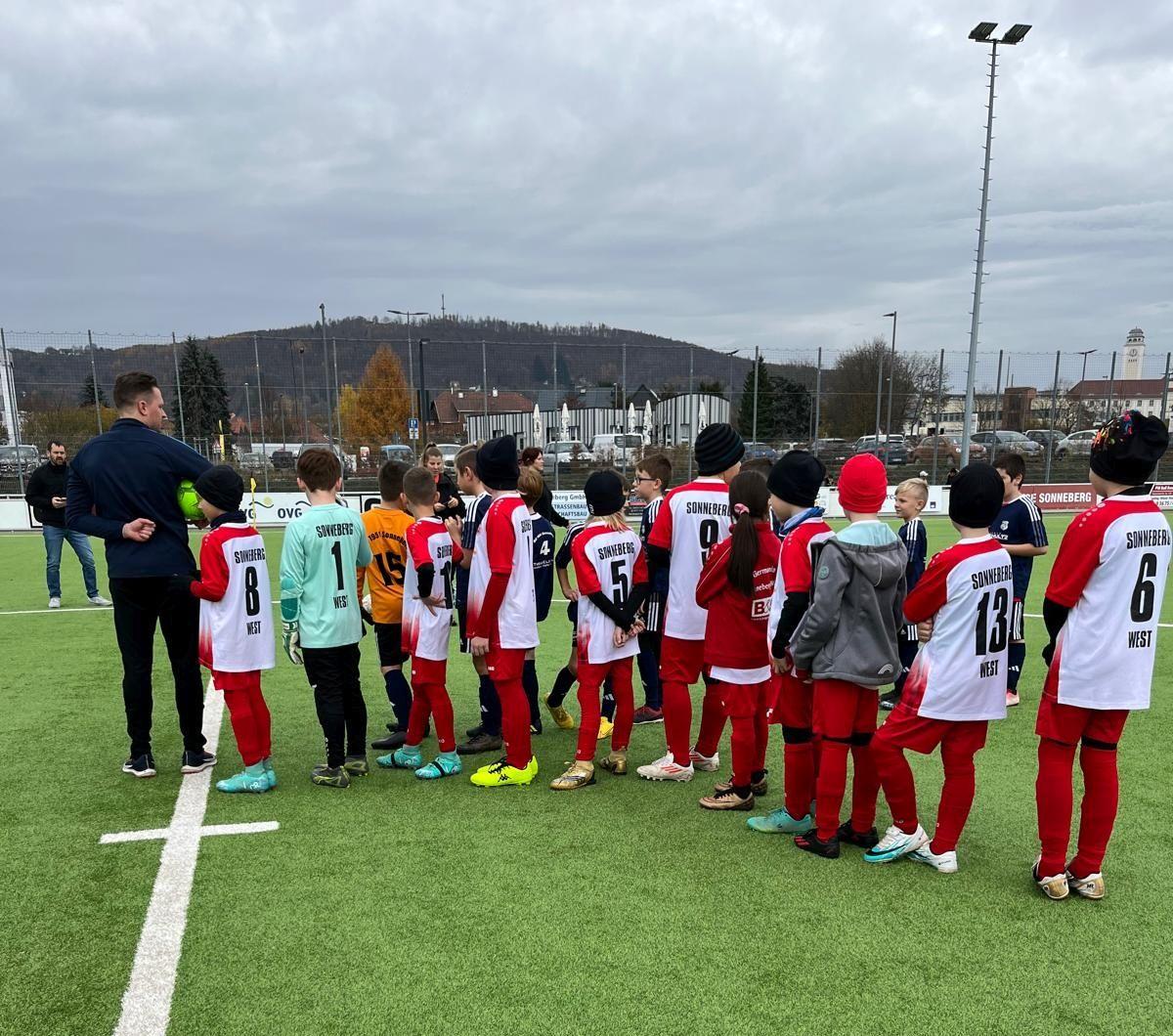![]() präsentiert die E-Jugend 2025/2026 Herbstrundenabschluss gegen Jagdshof Infos von Josie Brückner Sonneberg. Am Samstag, den 15.11.25 stand im Stadion Sonneberg unser Spiel gegen die SG Jagdshof an. Unsere Kids waren sehr motiviert und konnten in der dritten Minute durch Emil das 1:0 erzielen, in der 13min kam der Ausgleich der Gäste. Halbzeitstand 1:1.