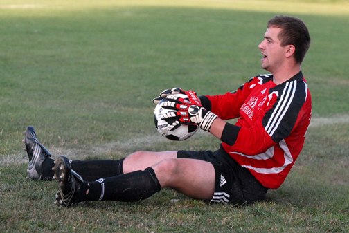 Doch das Derby war noch jung. Die Westler drückten nun vehementer, energischer und wurden belohnt. Nach einer Flanke von rechts war Büchner zur Stelle und sorgte mit dem Anschlusstreffer für Hoffnung auf den Heimrängen. Diese zerschlugen sich aber noch vor der Pause, als Referee Liebermann auf den Punkt zeigte - Handstrafstoß. Zuvor soll er schon ein, zwei Sonneberger Handspiele übersehen haben; jetzt schien das Fass voll zu sein. Vom Punkt aus erhöhte Stepanek sein Torekonto und das der Steinacher.