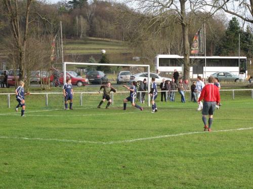 Entsprechend verheißungsvoll begann die Partie, doch weder Rexheuser (3. – nach Gestöcher im Fünfmeterraum, 20. - 2* nach Eckball), Kirchner (19. – nach Büchner-Pass Torwart angeschossen + 20. – Nachschuss drüber) oder Büchner (23. - frei drüber nach Böhm-Flanke) konnten die Kugel ins Netz befördern. Heldburg fiel bis dahin nur durch den übermotivierten Stößel auf, der innerhalb von 5 Minuten drei Germanen ungestraft „fällen“ durfte. In Minute 33 vertändelte dann Baumann den Ball im Strafraum und plötzlich lag das Leder im Tor, doch eine Abseitsstellung bewahrte die Westler vor dem Rückstand. Die Eintracht reklamierte hier auf Elfmeter beim Zuspiel, der aber nicht gegeben wurde. Erneut Rexheuser und Kirchner nach Dorst-Freistoß (35.) sowie Böhm nach Mahr-Flanke (40.) und wieder Rexheuser per Kopf nach guter Eingabe (45.) vergaben weitere Hochkaräter, während die Gastgeber dazwischen durch Krämer Rebhan prüften, hier wäre ein Abspiel auf den frei stehenden Kreins wohl gefährlicher geworden (41.).