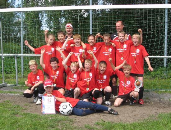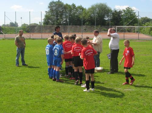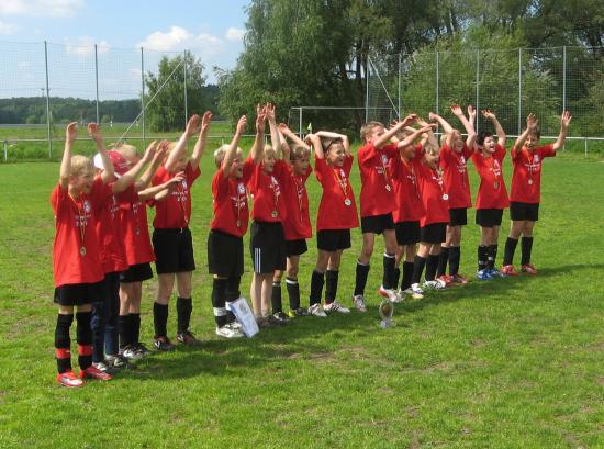 Nach dem Schlusspfiff gab es kein Halten mehr, und auch die beiden Trainer bekamen Sektduschen. Spielleiter Bernd Schindhelm und der JA-Vorsitzende Mike Bräutigam überreichten zunächst Steinach die Silbermedaille und auch die kleinen Germanen gratulierten den Steinachern zu ihrer tollen Saison. Danach erfolgte unter großem Applaus die Ehrung des alten und neuen Kreismeisters.