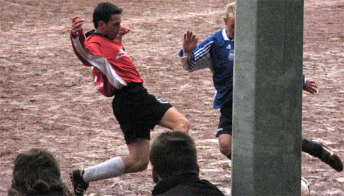 „Die Chancenverwertung rächt sich“ orakelte ein Germania-Fan. Er hatte dies noch nicht ganz ausgesprochen, da lag die Kugel zum zweiten Mal im Germania-Gehäuse. Andreas Ehnes schob den Ball nach schönem Spielzug überlegt ins Eck (39.).