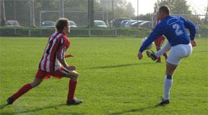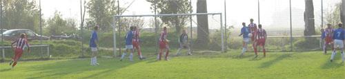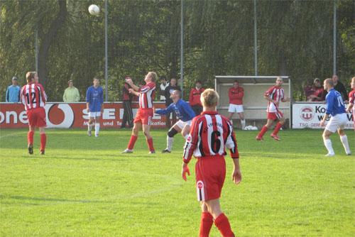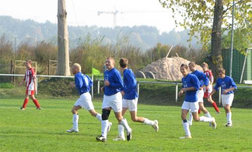 Es entwickelte sich eine muntere Partie, in der die Gastgeber kleine Vorteile besaßen. Dies führte dann auch zu zwei Toren innerhalb zweier Minuten. Erst köpfte Götz eine Freistoßflanke ein (22.), dann erwartete Rücker einen Querpass am langen Pfosten (24.). Beide Male war Hamberger Vorbereiter. Mit 3:1 wurden dann auch die Seiten gewechselt, wobei es auf beiden Seiten noch gute Möglichkeiten gab.