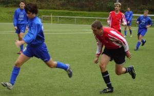 Genauso begann das Spiel dann auch. Steinach versenkte den ersten Freistoß nach 6 Spielminuten im Schneider- Gehäuse. Hierbei wirkten sowohl Keeper als auch die Mauer nicht gerade glücklich. |