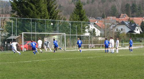 Bettelhecken. Die Gastgeber begannen verheißungsvoll. Nach nur vier Minuten prüfte M. Maier Keeper Eschrich das erste Mal. Auf der Gegenseite versuchte sich O. Müller mit einem Fernschuss, verfehlte das Gehäuse aber deutlich. Überhaupt waren die Gäste am Strafraum meist mit ihrem Latein am Ende. Die Bettelhecker Abwehr um Martin Rauch, insbesondere Martin Scheler, verhinderten Angriff um Angriff.