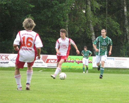 Nach der Pause hatten die Westler richtig Glück, als David Hülss zwei Mal das Nachsehen gegen seinen Gegenspieler hatte und dieser einmal kläglich vergab und das andere Mal Martin Stolze (auch den Nachschuss) parierte (46. + 48.). In der Folgezeit entwickelte sich ein munterer Schlagabtausch, der den Akteuren einiges abverlangte. Coburger setzte sich dann erneut gegen Max Lenk durch, traf aber nur den Außenpfosten. Mit zunehmender Spielzeit bekam die Germania das Spiel wieder in den Griff, vor allem der starke Marcus Lehneck erkämpfte sich viele Bälle. Im Anschluss an einen zu kurz abgewehrten Eckball war es dann soweit. Marcel Lehneck stand da, wo ein Stürmer stehen sollte und erzielte die Führung der Westler (75.). Den Schlusspunkt setzte dann Rene Leuthäuser, der sich in der eigenen Hälfte den Ball angelte und einen Konter über den ganzen Platz zog und mustergültig auf Christian Bauer quer legte, der die Kugel zum Endstand versenkte (90.).