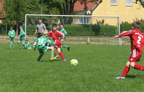 Mit Oberlind sah man sich gleich im ersten Spiel dem vermeintlich stärksten Gegner gegenüber. Die Westler machten von Beginn an Druck und belagerten das Oberlinder Tor. Rico Marsiske erkämpfte sich den Ball an der Grundlinie und sah den freistehenden Dominik Stammberger ca. 11m vor dem Tor in Schussposition. Den genauen Rückpass konnte Dominik mit einem satten Direktschuss verwandeln. Das 1:0 war auch eines der schönsten Tore des Spieltages. Nach dem 3:0 zur Halbzeit war das Spiel zwar entschieden, doch der Torhunger der Kinder war noch nicht gestillt. Noch drei weitere Male zappelte die Kugel im Netz der Linder, die in keiner Phase des Spieles dagegen halten konnten.