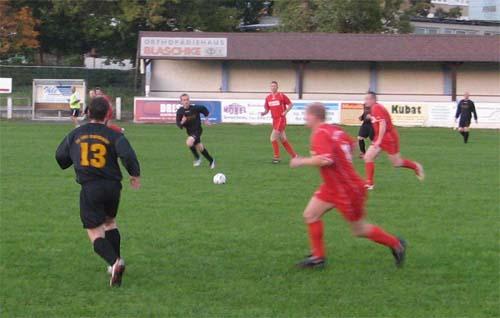 Erst mit zunehmender Spielzeit wurde das Spiel etwas druckvoller u. unsere Mannschaft erspielte sich einige Torchancen . Das 1:0 resultierte aus einem Foulstrafstoß, den Stev Bätz verwandelte u. das 2:0 erzielte Steffen Riedel mit einem direkt verwnadelten Freistoß. Mit diesem Ergebnis ging es in die Pause, denn auch die gastgebende Mannschaft blieb bis zu diesem Zeitpunkt unter ihren Möglichkeiten.