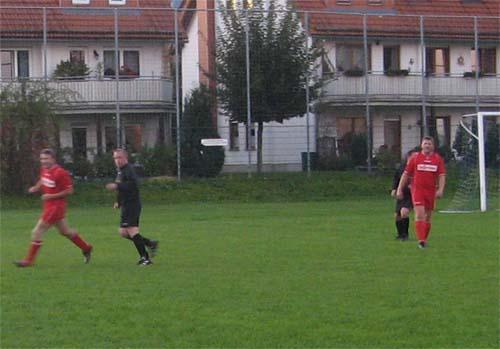 In der 2. Halbzeit kam unsere Mannschaft durch Horst Fischer zur 3:0-Führung und jeder glaubte schon an einen sicheren Sieg. Plötzlich der Anschlußtreffer, ein geschenkter Strafstoß und der Gastgeber war wieder im Spiel und unsere Mannschaft völlig von der Rolle. So kam es, wie es kommen musste, dass die "1951er" mit dem Schlußpfiff noch den nicht mehr erwarteten 3:3 Ausgleich schafften.