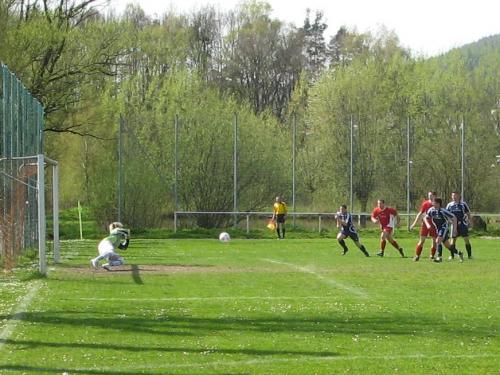 Die Westler wollten den schwachen Auftritt im Wolkenrasen vergessen machen und begannen konzentriert. Einen tückischen Aufsetzer von M. Eber konnte Deltow gerade noch mit den Fingerspitzen um den Pfosten lenken (10.). Aus dem Nichts die überraschende Führung der Gäste: Krannich eroberte einen Abschlag vom Bettelhecker Gehäuse, lief Homuth davon und vollendete cool über den herauseilenden Lichtenstein (13.). Die Gastgeber wirkten aber nicht geschockt und spielten weiter nach vorne. Zella-Mehlis verengte jedoch geschickt die Räume, und so ergaben sich Torchancen nur aus Standardsituationen. Einen Nachschuss Homuths parierte Deltow erneut (18.). Der junge Braun hatte dann nach einem Abspielfehler Homuths eine gute Schusschance und verfehlte das Bettelhecker Tor nur knapp (25.). Der agile Homuth war es dann auch, der von links eine gute Flanke auf den mitgelaufenen A. Fischer schlug, welcher sich schön durchsetzte und mit links zum Ausgleich traf (30.). Trainer Recknagel brachte nun Matthes für F. Fischer, und dies sollte sich als guter Schachzug erweisen. Nach schönem Pass von Bätz war Matthes durch, umspielte den Torwart, um dann aber trotzdem aus spitzem Winkel nur das Außennetz zu treffen (35.). Die Gäste hatten durch Ulrich im zweiten Versuch noch eine Gelegenheit, dessen Schuss aber knapp das Tor verfehlte (40.).