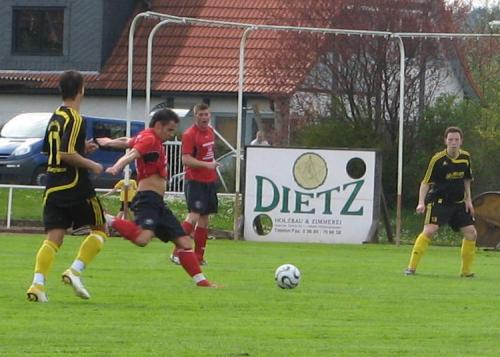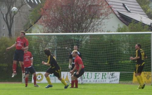 Interimscoach J. Schubart hatte den wacker kämpfenden Germanen in der Pause Mut zu gesprochen und prompt ergab sich der nächste Riese. Mahr erkämpfte sich den Ball, ließ einen Gegenspieler stehen, passte zu Meusel, der wieder zu Mahr, welcher nun frei im Strafraum vor Klemm auftauchte, doch dieser konnte den halbherzigen Abschluss mit einer starken Reaktion parieren – das musste der Ausgleich sein (55.)! Besser machten es die Hausherren in Person von Holl, der von der Strafraumgrenze trocken abzog und traf (57.). Danach hatten die Germanen bei einem Grüneberger-Kopfball Glück, dass dieser vorbei ging (60.). Mit zunehmender Spielzeit stemmten sich die Westler immer mehr gegen die drohende Niederlage und setzten durch A. Fischer ein erstes Zeichen (72.). Matthes tankte sich erneut durch die Hildburghäuser Abwehr und scheiterte frei wie zuvor Mahr am überragenden Klemm (75.). Wer solche Chancen nicht macht, braucht sich nicht zu wundern, wenn er am Ende mit leeren Händen da steht. N. Eber rettete dann für seinen bereits geschlagenen Keeper, indem er eine Bolz-Eingabe in höchster Not aus der Gefahrenzone schlug (77.). Die Westler machten weiter auf, und so ergaben sich Konterchancen für die Hausherren. Der eingewechselte Schmidt brach durch und R. Schramm scheiterte an Lichtenstein (78.). Fünf Minuten vor Ende der regulären Spielzeit dann doch noch der hoch verdiente Anschlusstreffer durch Matthes, der nach feinem Homuth-Zuspiel erneut seinen Gegenspieler alt aussehen ließ und vor dem herauseilenden Klemm einschob (85.). In der Schlussminute hatte M. Eber mit einem Freistoß aus 20m zentral vor dem Klemm-Tor die Ausgleichschance, doch der Keeper lenkte den Ball über die Latte.