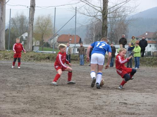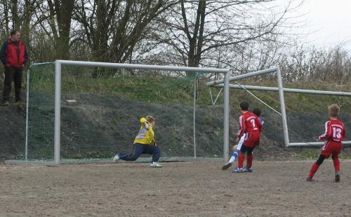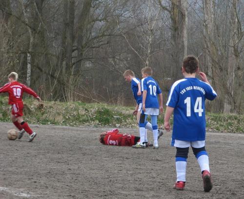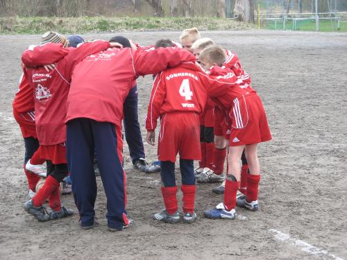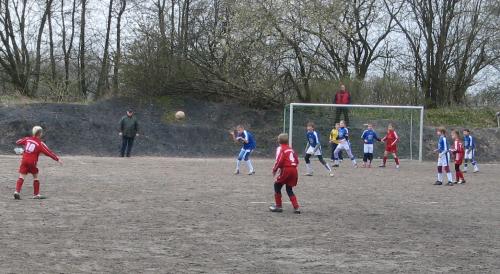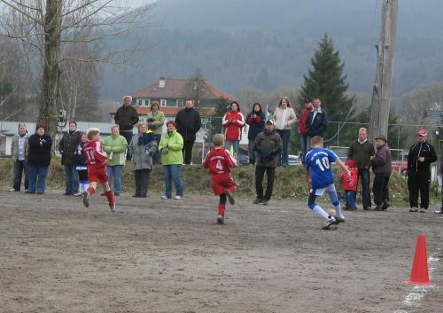 Auf dem gut bespielbaren Hartplatz am Karpfenteich zeigten unsere Jungs zumindest in der ersten Halbzeit gegen die körperlich (ein Spieler Jahrgang 94!) starken Jungs und Mädchen von der SG Jud/Neu./ Heinersdorf wieder eine starke Leistung. Man spielte immer wieder über die Außen und brachte gut gezielte Flanken in die Mitte. So konnte man die großen Gegenspieler überwinden. Es dauerte auch nicht lange und die Jungs aus Sonneberg-West führten mit 3:0 durch den Kleinsten auf dem Platz und dreifachen Torschützen M. Popp. Aber das sollte noch nicht der Halbzeitstand sein, denn der Ball zappelte noch zweimal im Netz der Gäste durch zwei schöne Schüsse von M. Töpfer.