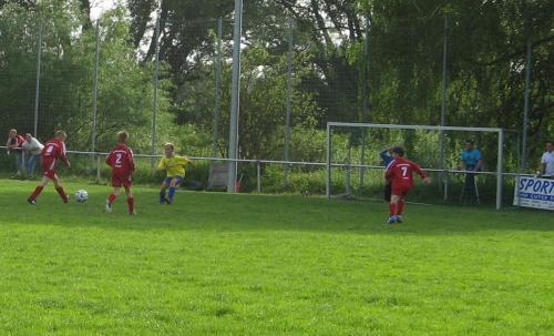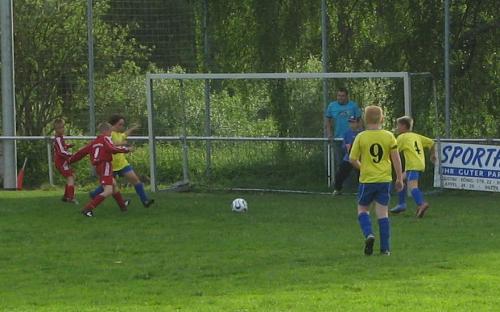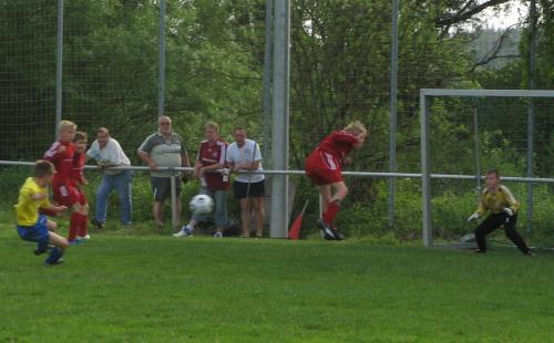 Es entwickelte sich von Anfang an ein gutes Spiel mit größeren Chancen auf unserer Seite. Von Beginn an machten unsere Jungs Druck auf das Tor der Gäste und so sollten auch gleich zwei schöne Tore durch unseren Stürmer M. Popp fallen. Aber auch die Gäste hatten ihre Chancen und kamen durch einen Freistoß zum Anschlußtreffer. Doch noch vor der Pause erzielte M. Töpfer den 3:1-Pausenstand.