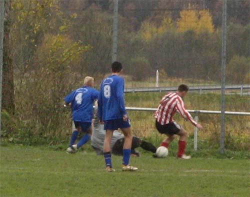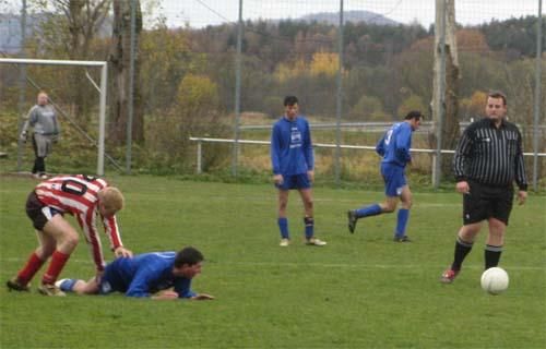 Nach der Pause ging es munter weiter, meist in Richtung des Bettelhecker Tores. Rottmar hatte eine Großchance nach der anderen, vergab aber selbst aus bester Position. Eine der vielen Schlafwageneinlagen der Gastgeber nutzte Böhmer zum 3:4. Doch hier sollte noch einmal der Ausgleich fallen: Ein Freistoß gelangte irgendwie zum Ex- Rottmarer Ludwig, welcher dann Ball im Kasten unterbrachte.