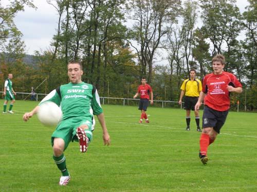 Nachdem Herrmanns Schuss von Hessland noch entschärft wurde (8.), hatte Rexheuser auf der Gegenseite nach Patzer der Grün-Weißen den ersten Riesen (10.). Doch weder er noch der kurz darauf von A. Fischer herrlich in Szene gesetzte Bätz (12.) brachten die Kugel im Tor unter. Nachdem auch A. Fischer nur das Außennetz traf, waren erst einmal die Gastgeber am Zug. Doch weder Schindler (19. - freistehend drüber geköpft) noch sein unbedrängter Mannschaftskollege nach zu kurz abgewehrten Freistoß fanden das Ziel (21.). Nun war wieder die Germania dran. N. Ebers Abschluss parierte Bodesheim (23.) und Rexheuser haute freistehend nach schöner Vorarbeit von Homuth über den Ball (30.). Da auch Rexheusers Kopfball (40.) und N. Ebers Direktabnahme (42.) den Weg ins Tor nicht fanden, wurden die Seiten torlos gewechselt.