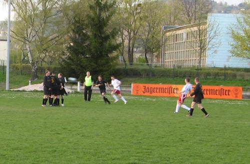 Sven Brückner im Tor gab unserer Mannschaft mit seinem guten Stellungsspiel den nötigen Rückhalt von Anfang an. Bereits in der 3. Minute überlistete Jens Nicolai die zu stark aufgerückte Abwehr der 1951-er und schoss zur 1:0-Führung ein. In der Folgezeit wurden von beiden Mannschaften gute Tormöglichkeiten herausgespielt, die aber nichts zählbares einbrachten. Bei einem Hinterhaltschuß von Jens Nicolai mußte Torhüter Frank Dreilich sein ganzes Können unter Beweis stellen.