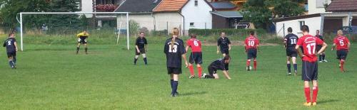 Die Gastgeber haderten viel mit Schiedsrichter Krasemann, so dass dieser zwei Spieler (70. - Dörre, 88. - D. Mahr) wegen Reklamierens vom Platz stellte. Dann erst überwand die Bezirksligareserve die defensiv spielenden Gastgeber und Karl netzte zum verdienten 0:1 ein (95.). |