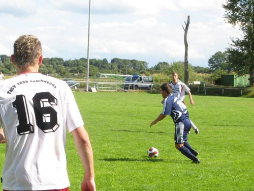 Bettelhecken zeigte sich nach der Pause allerdings wieder couragierter. Nach einem klasse Spielzug über Marian Rexhäuser und Marcus Büchner drosch Jens Meusel den Ball knapp am langen Eck vorbei. Und weiter ging es Richtung Rose-Gehäuse. Allerdings fehlten in der Offensive der Gastgeber die letzte Entschlossenheit oder das Glück. So stellte Ditscheids 18-m-Flachschuss aus bester Position für den Geschwendaer Torhüter letztlich keine Gefahr dar. Als Rose nach einem von Mike Eber getretenen Freistoß dann doch einmal patzte, wussten weder Rexheuser noch Ditscheid die Gunst der Stunde zu nutzen. Ein Zuschauer floskelte nach dieser vergebenen Chance: "Solche Spiele verlierst du meistens." Noch nicht ganz ausgesprochen, setzte Maleße den schnellen Frischmuth hervorragend in Szene. Nur gut, dass Torhüter Lichtenstein gleich zweimal überragend parierte.