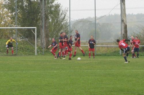 .JPG) Freistoß Mike Ebers in die Mauer