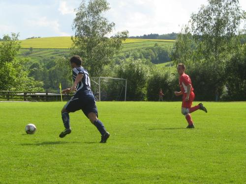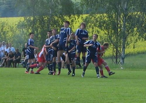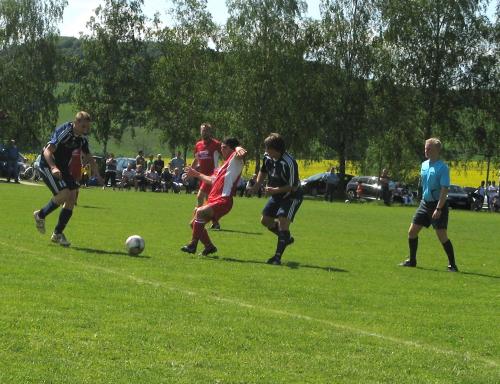 Ummerstadt. Nachdem Ummerstadt zunächst zielstrebiger in die Partie startete, hatten auch die Germanen nach zehn Minuten ihre ersten gelungenen Angriffe, doch Ditscheid verfehlte die guten Döbrich-Eingaben jeweils um eine Fußspitze. Auf der Gegenseite durfte sich Rebhan bei einem Freistoß - und nach einem tollen Konter über Mi. Preßler, Wiegler, Ma. Preßler und Voit mit einer Glanzparade zeigen (18.). Auch der auffällige Matthias Preßler scheiterte am Bettelhecker Torwart (20.). Das Spiel wogte nun hin und her; Bätz verfehlte eine Eingabe des aufgerückten Meusel nur knapp (22.). Dellert ließ dann einen Freistoß der Westler prallen und Ditscheid schob ein; doch der Schiedsrichter entschied auf Abseits (27.). Zum Ende der ersten Hälfte dominierten plötzlich die Gäste. Büchner und Ditscheid verstolperten jedoch frei vor dem Tor und Dellert hatte mit Döbrichs Schuss so seine Probleme. Folgerichtig die Führung für die Germania: Matthes flankte mustergültig auf den eingelaufenen Rexheuser, der unhaltbar einköpfte (40.). Michael Preßler scheiterte unmittelbar vor der Pause noch einmal am guten Rebhan.