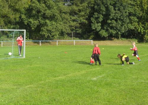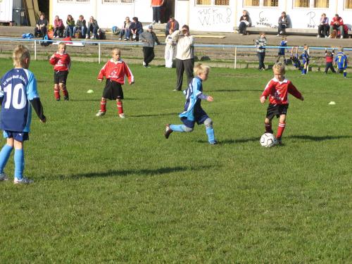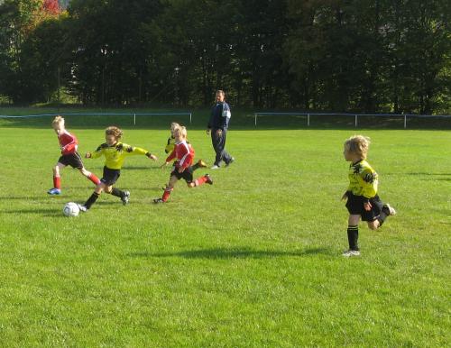 Die dieses Mal von Andreas Liesmann betreuten F2-Junioren verschliefen das erste Spiel gegen Schalkau. Entgegen den letzten Begegnungen fanden die Schellhorn, Funke & Böhme nie richtig zu ihrem Spiel, was natürlich auch an den gut aufspielenden Blau-Weißen lag. Die Tore waren da nur eine Frage der Zeit. Schalkau hatte mit einigen groß gewachsenen Spielern Vorteile gegen unsere Jungs, wo wieder fünf G-Junioren aushalfen und die Spielfähigkeit der Truppe überhaupt erst gewährleisteten. Dafür erst mal ein dickes Kompliment an die Bambinis und ihren Trainer Steffen Riedel.