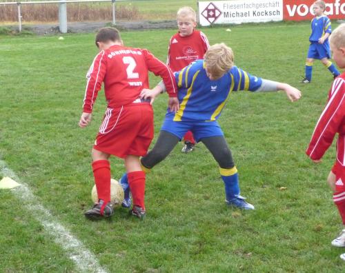 Hier gewann der „ältere“ Jahrgang verdient mit 1:0. Nachdem die Puff, Raab & Co. sich in Hälfte eins vor dem Tor von Daniel Päschel festsetzten, gelang es trotz guter Torchancen nicht früh in Führung zu gehen. Kurz vor der Pause traf Philipp Holland zur Führung für die F1. Nach der Pause kam dann die F2 auch besser ins Spiel, jedoch stand die Abwehr der F1 recht gut und konnte ihre körperliche Überlegenheit nutzen.