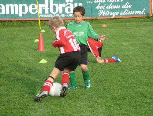 Voller Hoffnung und Siegesdrang gingen die Westler ins Spiel. Jedoch zeichnete sich schon ab der ersten Minute eine spielerische Überlegenheit der Lauschaer ab, die sie in der 4. Minute mit dem 0:1 ausnutzten. Obwohl unsere Mannschaft dagegenhielt, wollte einfach kein Tor gelingen. So verpasste Maximilan Schellhorn mit einem Pfostenschuss den Anschlusstreffer. Im Gegenzug aber nutzten die Gäste in der 8. Minute ihre Chance aus und erhöhten auf 0:2. Bis zur Halbzeit fielen trotz guter Chancen auf beiden Seiten keine weiteren Tore.