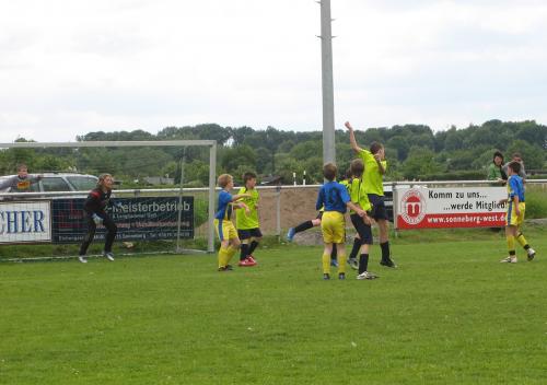 Bereits in der Anfangsphase die Führung durch Weigelt, der einen Abpraller verwertete (5.). Nun spielte der Bezirksligist, doch der erste Angriff der Wäldler-SG nach dem Führungstreffer brachte das 0:2 (15.). Weigelt tunnelte bei seinem Solo sowohl seinen Abwehrspieler als auch den Torwart. Es folgte ein verzweifeltes Anrennen der Sonneberger SG, aber der lange Haag und ein aufmerksamer Torwart Müller-Sixer sowie eine sehr robust zu Werke gehende Abwehr ließen nichts anbrennen. Als Schulz eine Ecke von Mahr über die Linie drückte, keimte Hoffnung auf (38.). Der Torjubel war noch nicht ganz verhallt, als Weigelt mit seinem dritten Tor den alten Abstand wieder herstellte (39.). Sehenswert eine Flanke vom eingewechselten Jakat, die Rierl direkt nahm und das Tor nur knapp verfehlte (50.). In den letzten Minuten folgte ein Konter des Vizekreismeisters, den Weigelt erneut erfolgreich abschloss (54.). Mit dem Schlusspfiff staubte die eingewechselte Rosenbaum zum 5:1-Endstand ab.