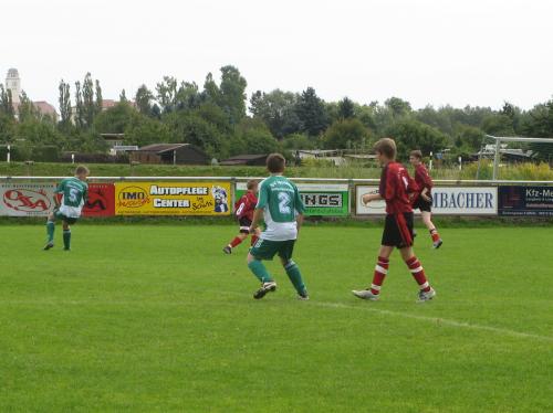 Direkt nach dem Anstoß zeigten die Junioren eine kämpferisch und spielerisch gute Einstellung und erspielten sich viele Torchancen. Nach 7 Minuten verwertete Tommy Barth eine Vorlage von Andy Fürl und schob zum 1:0 ein. Wenig später (13.) war es wieder der gleiche Spieler der auf 2:0 erhöhte. Danach verflachte sich die Partie und Neuhaus Schierschnitz kam besser in die Partie. Nach einem Abwehrschnitzer von Johannes Stolze fiel der Anschluss (21.). Im Anschluss daran besannen sich die jungen Germanen wieder auf ihre Stärken und drängten nun wieder nach vorne. Dima Volynec spielte wiederum Tommy Barth frei, der zog ab – 3:1 (28.). Als alle noch beim Jubeln waren nahm sich Dima Volynec den Ball in der eigenen Hälfte, spielte 3 Mann aus und zog unhaltbar zum 4:1 ab (29.). Eine Minute vor Schluss kamen die Neuhäuser noch einem gefährlich vor das Tor der Westler und erzielten prompt den erneuten Anschluss (44.) Danach war Halbzeit.