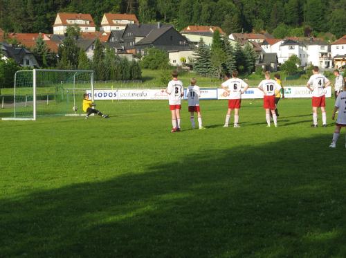 Auch Anfang der zweiten Hälfte kämpften einige Germanen (Zentgraf, Schönfelder) weiter vorbildlich gegen die vor allem körperlich überlegenen Gäste an und auch Keeper Stolze vereitelte einige richtig gute Gelegenheiten. Nimke zerrte an den Ketten, wurde jedoch in der Offensive zu wenig unterstützt. Wie schon in der Vorwoche schwanden auch dieses Mal mit zunehmender Spielzeit bei den dieses Mal von Tobias Karl alleine betreuten Gastgebern sichtbar die Kräfte und der Gegner wurde zum „Toreschießen“ richtiggehend eingeladen. Als dann auch noch Zentgraf nach einem Zweikampf mit blutender Nase vom Feld musste, brachen in den letzten Minuten alle Dämme. Weitere zwei Neunmeter wurden dabei verursacht, die der FSV dankbar verwandelte.