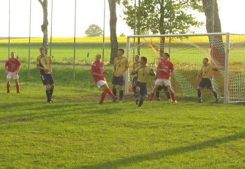 Nach anfänglichen Schwierigkeiten der Germanen nutzte auch Rottmar gleich die erste Torchance und erzielte am Freitag durch einen „Sonntagsschuss“ von Schubart das 1:0 (3.). Die Gäste kamen immer noch nicht in Fahrt, und so drückten die Gastgeber weiter. Erst nach 25 Minuten erspielten sich die Westler Chancen, doch Hannweber parierte glänzend Büchners Schuss und wenig später auch seinen Kopfball. Jetzt war die Bezirksligareserve im Spiel und glich wenig später durch Rauh aus (36.). Kurz vor der Pause nutzte Büchner eine Unsicherheit des Keepers und schob zur Führung ein.
