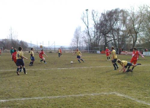 Beide Mannschaften begannen aus einer sicheren Defensive heraus zu spielen. In der 8. Minute nutzte Hülss den ersten Abwehrfehler in der Steinacher Verteidigung und schob aus 16m zum 1:0 ein. Munter ging es weiter, und die Gäste glichen 6 Minuten später durch einen straff geschossen Freistoß von Haubenreißer aus. Danach spielte sich alles zwischen den Strafräumen ab, und es ergaben sich keine Möglichkeiten für beide Mannschaften. Erst in der 35. Minute hätte Bauer die Gastgeber in Führung bringen können, doch nach präziser Flanke von Hülss köpfte er freistehend knapp am Tor vorbei. Kurz vor dem Pausenpfiff hatten die Steinacher Pech, als ein Fernschuss nur an die Latte knallte.
