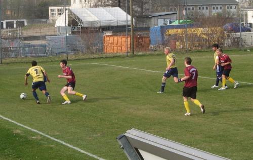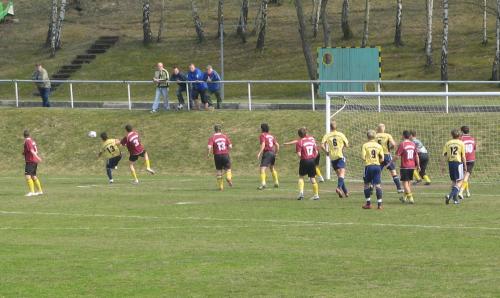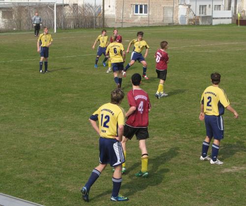 Aufgrund der Spielverlegung der A-Junioren-Partie auf Sonntag konnte eine spielfähige Mannschaft aufs Feld geschickt werden. Und so hatten die 04er von Anfang an das Spiel in Griff. Chancen waren allerdings auf beiden Seiten Mangelware. Claus Winkler brach den Bann und netzte nach gutem Zuspiel von Schreck ein (35.). Bis zur Pause passierte nichts mehr.