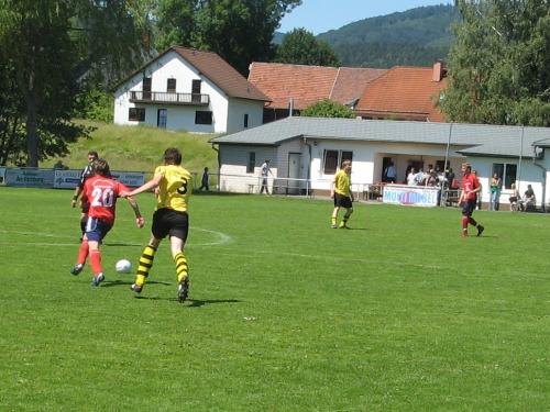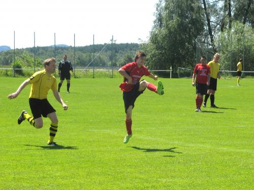 Schon von Beginn an ließen die Westler den Ball laufen und erspielten sich Torchancen. Doch Karl (7.), Leuthäuser (13.) und Bauer (23.) konnten das Leder nicht versenken. In der 25. Minute machte es dann Bauer besser. Er wurde von Leuthäuser im Strafraum freigespielt und netzte zum Führungstreffer ein. Die Mengersgereuther machten nur durch einen Jahn-Schuss in der 11. Minute auf sich aufmerksam. Mehr kam in der ersten Halbzeit nicht. Anders auf der Gegenseite. Ries (33.) und wieder Bauer (40.) hätten die Führung ausbauen können.