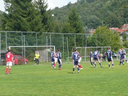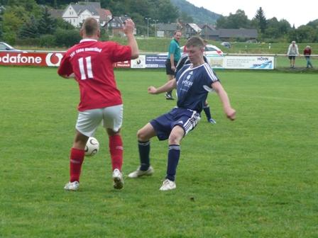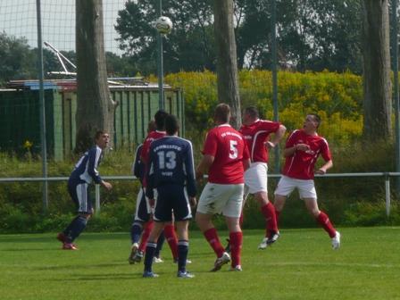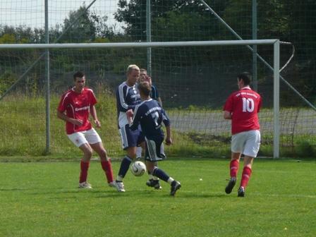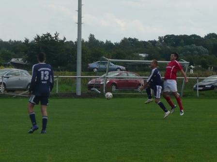Die Hausherren starteten offensiv, ließen hier aber bereits erkennen dass sie die Deckungsarbeit gerne auch mal vernachlässigen würden. So verfehlte Bugdan das Ziel per Drehschuss, die Westler waren nur durch zwei, drei Freistöße halbwegs gefährlich. Zu einem Treffer konnte das aber nicht reichen. Überhaupt verfingen sich die Gastgeber immer wieder in der Verteidigung der Gäste. Vor der Pause zielte Maaser noch einmal über das Germaniator.