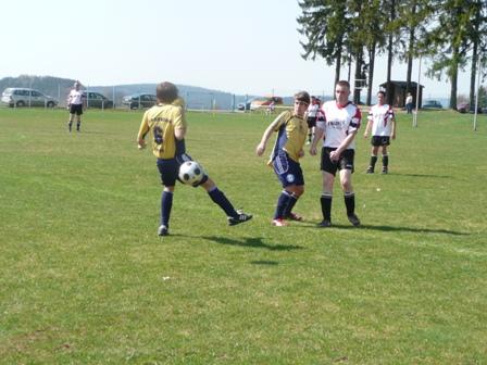 Der erste Pfiff von Schiri Funke war noch nicht ganz verstummt als Christoph Maier schon zum ersten Mal einnetzte. Einen Angriff über die rechte Seite schloss er aus zentraler Position ab (1.). Wenig später überlief der agile Matthes seinen Widerpart, die Kugel gelangte über Maier zu Rühmer - 0:2 (8.). Obwohl die Gastgeber nicht all zu gefährlich wurden, dauerte es trotzdem bis kurz vor Ende der ersten Hälfte bis der eingewechselte Bauer mit Links abzog. Schulz machte hier keine gute Figur und legte sich das Ei quasi selbst ins Netz. Ansonsten hielt der Judenbacher Keeper aber noch einige gute Schussversuche der Germania vom Karpfenteich.