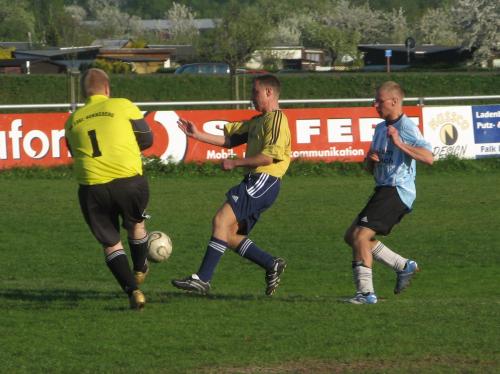 Die Schlußphase gehörte dann den Wolkenrasenkickern. Nur noch selten konnten sich die Westler befreien, doch wenn dann sprangen Hochkaräter dabei heraus (Maier). Nichts desto trotz erzielte Peterhänsel mit zwei Treffern in den letzten acht Minuten noch den Ausgleich für die Gäste.