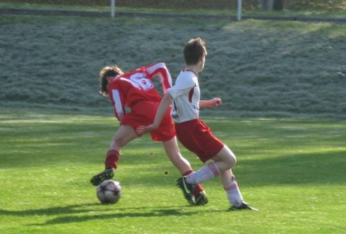 Leider patzte der ansonsten gute Stolze im Tor und musste den haltbaren Schuss von Albert zum frühen 0:1 passieren lassen (4.). Danach gab es erste sehenswerte Spielzüge der SG, die vor allem über die technisch beschlagenen Schubert und Rierl gute Szenen hatte. Probleme bereiteten immer wieder die energischen Antritte des FC über Oblaender, den einige Abwehrspieler halbherzig angriffen und so das 0:2 kassierten (10.). Danach gab es eine 100%ige Chance für den frei durchgebrochenen Germanen Schmidt, doch zum Entsetzen aller verzog er freistehend. Nun dauerte es etwas bis zum nächsten Tor, wobei hier der Gegner nicht energisch gestört wurde und Stolze den Ball per Fuß genau zu Oblaender abwehrte, der dankbar einschob (28.). Während die Hausherren so zu einfachen Toren kamen, hatten die Gäste durch Schubert den nächsten Riesen, doch der Sonneberger Torwart konnte parieren (30.). Noch vor der Pause fiel das 0:4, nach einem Eckball, bei dem Bachetzky und Morgenroth erneut Oblaender nicht energisch genug störten.