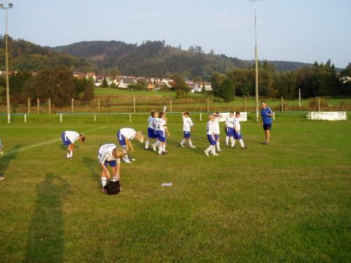 Zum Spielverlauf: Gleich zu Beginn spielten unsere Kid`s selbstbewusst nach vorne. In der dritten Minute erzielte Lisa Lützelberger nach Vorarbeit von Oliver Jürß das 1:0. In der Folgezeit hatten wir einige Chancen (12. Min.: Olli mit Lattenschuss), Neuenbau kam aber auch einige Male gefährlich vors Tor. Der stark spielende Robert Koch klärte mehrmals in überzeugender Manier. Nach einer knappen Viertelstunde fasste sich Paul Rosenkranz ein Herz und zog aus ca. 20 m ab. Den Schuss konnte der sonst gute Gästetorhüter nur noch ins eigene Tor abklatschen - 2:0 für uns. Danach kamen die Gäste über ihren stärksten Spieler Johannes Roth besser ins Spiel, so dass sich Markus Wichmann im Tor auszeichnen konnte. Die letzten zehn Minuten sah unser Team im Vorwärtsgang mit einigen Hochkarätern (Olli knapp drüber bzw. gehalten; Markus Döbrich an die Latte). Es blieb zur Halbzeit beim 2:0.