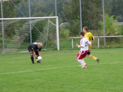 Nach einer kurzen Abtastphase drang Hülss (8.) über außen in den Strafraum der Gäste ein, aber seine Hereingabe fand keinen Abnehmer. Die nächste Chance hatten die Seltendorfer. Dinius schob die Kugel am herausstürmenden Schneider im Tor der Westler vorbei (17.), doch auf der Linie rettete M. Scheler. In der 25. Minute machte das erste Mal Ditscheid auf sich aufmerksam. Er dribbelte 2 Gegenspieler aus und der Dritte stoppte ihn nur mit einem Foulspiel. Den fälligen Foulelfmeter verwandelte Dorst zum 1:0. Die Gäste aus dem Hinterland setzten immer wieder ihre schnellen Stürmer Scheffler und Dinius ein. Doch hatten sich noch Pech im Abschluss.