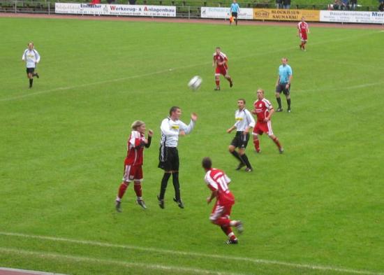 Nach einer rund zehnminütigen Abtastphase, in der beide Seiten versuchten Ruhe in ihr Spiel zu bringen, verfehlte Hessland eine Flanke von Rechts. Bohnenstengel wehrte den Schuss Tuchenhagens ab, Frischmuth setzte den Nachschuss über das Gebälk. Auf der anderen Seite drang Rexheuser in den 16er ein, wurde aber rechtzeitig gestoppt. Die Gastgeber hatten zwei, drei gute Möglichkeiten, bevor Langguth zur Führung einköpfte (27.). Die Westler versuchten zu antworten, liefen aber geradewegs in einen Konter, den Frischmuth zum 2:0 abschloss (31.). Außer einem Kopfball Rexheusers und einem straff getretenen Freistoß Ebers, den Keeper Reimpell prallen ließ, war von den Gästen leider nicht mehr viel zu sehen, obgleich die Spielanteile nun gleichmäßiger verteilt waren.