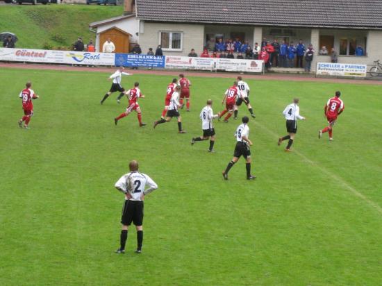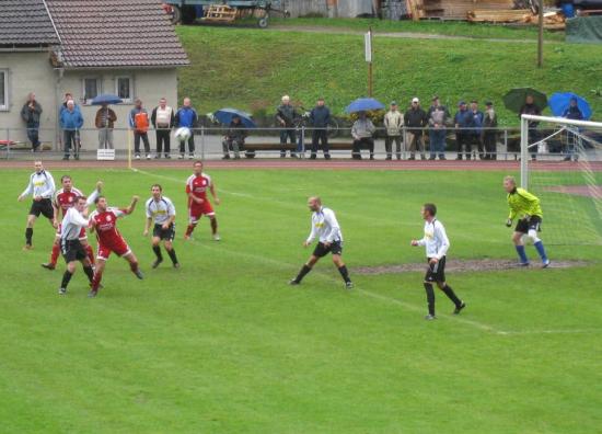 So übernahmen auch schon frühzeitig die Gastgeber die Initiative im Weihbachgrund und hatten besonders über den kaum zu stellenden Martin Erdenbrecher einen ständigen Unruheherd in der Hälfte der Gäste. Es war also nur eine Frage der Zeit bis das erste Tor fallen würde, doch zunächst schien Keeper Bohnenstengel den Kopf oben zu behalten. Aus drei Metern katapultierte Sören Frischmuth (7.) einen missglückten Schuss von Tuchenhagen freistehend über den Querbalken. Nach einer viertel Stunde fand Höfers Direktschuss nach Ablage von Tuchenhagen nicht die Lücke ins Tor und auch Christoph Langguth (Foto, 25.) scheiterte am Torwartroutinier der Gäste per Flachschuss. Wenig später konnte aber dann der gleiche Spieler per Kopfballaufsetzer eine Erdenbrecher-Flanke zum längst fälligen Führungstreffer am kurzen Pfosten links einlochen. Die Gäste konnten so bereits nach einer halben Stunde nur noch in der Abwehr reagieren und ihre zahlreich mitgereisten weiblichen Fans kaum von ihren Sitzkissen reißen. Wie aus dem Lehrbuch fiel dann auch der nächste Treffer für die Höfer und Co alsTuchenhagen aus dem Mittelfeld Frischmuth über links auf Reisen schickte und dessen Querpass Erdenbrecher vom rechten Strafraumeck mit straffem Schuss in die Maschen jagte. Zwar versuchten dann die Böhm, Ditscheid und Rexheuser bis zur Pause dem Blatt eine Wende zu geben, doch trotz einiger Leichtsinnsfehler in der Veilsdorfer Hintermannschaft blieben die Gästeangreifer weiterhin blass.