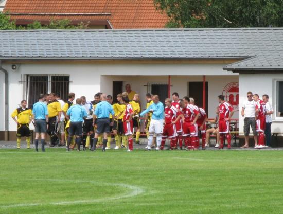 Durch Philipp Päslers Kopfball, der West-Spielertrainer Bohnenstengel nicht vor allzu große Probleme stellte, war ein letztes Aufbäumen der Gäste zu verspüren. Nach klasse Vorleistung von Frank Fischer, der schön über links durchmarschiert war, erhöhte Ditscheid auf 4:0. Büchner legte nach Idealpass von Dorst nach (5:0). René Kirchner band den Sack mit einem Gewaltschuss - Ditscheid hatte zuvor unentschlossen gewirkt und den Ball vertändelt - zu. Quelle: Freies Wort, Lokalsport Sonnberg vom 2.8.2010