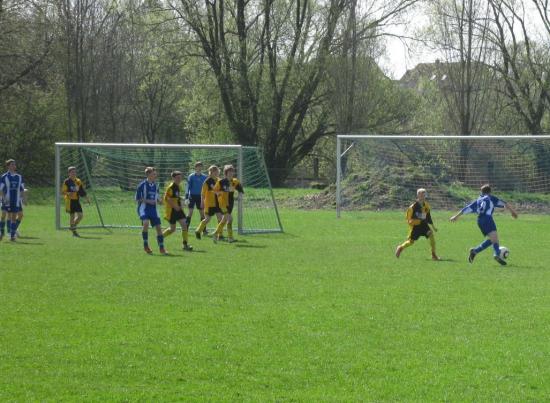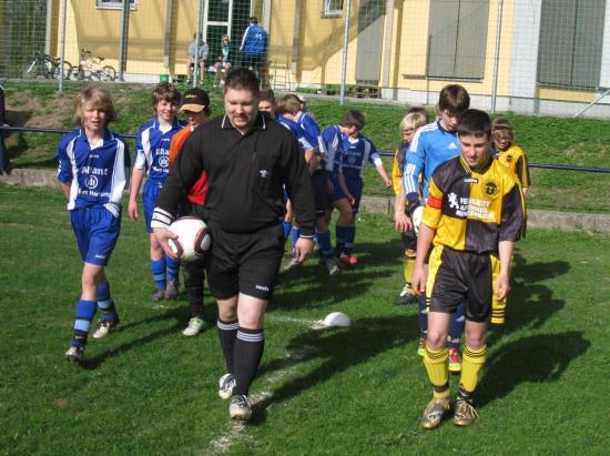 Köppelsdorf. Für den Tabellenführer standen die Vorzeichen vor diesem Spitzenspiel alles andere als günstig, fielen doch mit Mahr und Fuchs zwei C-Junioren aus. Auch erkrankt, aber auf die Zähne beißend, konnte Leitwolf M. Schulz zum Glück auflaufen. Das Aufgebot komplettierten je zwei D-Junioren aus West (Schmidt + Popp) und Köppelsdorf (Kessel + Jürß), und alle vier Spieler machten ihre Sache ordentlich. Ein Dankeschön an alle D-Kicker!