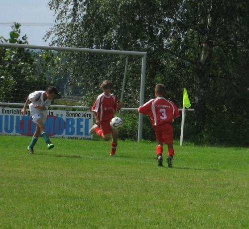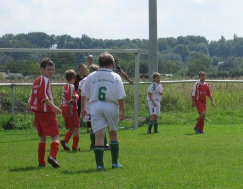 Im ersten Punktspiel der neuen Saison traf unsere D2 bei sommerlichen Temperaturen innerhalb von 8 Tagen zum zweiten Mal auf den SC 06 Oberlind. Ohne Max Züllich, Fabian Jakat, Miriam Kocksch, Jonas Döbrich, Max Büttner und Sebastian Heßler konnten die Jungs und Mädels leider nicht an die gute spielerische Vorstellung des Pokalspieles in Oberlind anknüpfen. Im gesamten Spielverlauf fehlte es bei vielen Kindern an Laufbereitschaft. Vielleicht lag es an den hohen Temperaturen. Trotzdem ging es nur mit einem knappen 1:2-Rückstand in die Pause. Zu viele Torchancen wurden wieder leichtfertig vergeben. Robert Büchner gelang nach dem 0:2-Rückstand postwendend der Anschlusstreffer. Ihren Einstand in Sonneberg-West gab Annalena Vorndran, sie machte ihre Sache gut.