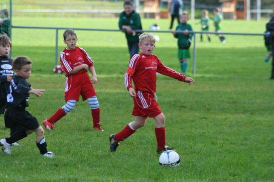 In der zweiten Partie spielten die F1-Junioren gegen den FSV 1999 Mengersgereuth-Hämmern. Mercedes hütete in diesem Spiel das Tor und Eric, der in der ersten Begegnung im Tor stand, spielte dafür im Sturm. Durch Eric kam etwas Schwung ins Spiel, da er sich ein ums andere Mal auf der rechten Seite gut durchsetzte und den Ball gefährlich vor des Gegners Gehäuse brachte. Im Großen- und Ganzen haben wir uns auch in diesem Spiel nicht gerade mit Ruhm bekleckert und konnten nur streckenweise durch spielerische Aktionen glänzen. Am Ende zählt auch hier der Sieg, der durch Tore von Tim, Dominik und Moritz je einem Treffer und Eric, der zweimal traf zum Endstand von 5:0 auf der Habenseite zu verbuchen ist. Zu bemerken ist noch, das Mercedes die einzige Torchance der Mengersgereuther durch einen Freistoß mit einer guten Parade zunichte machte.