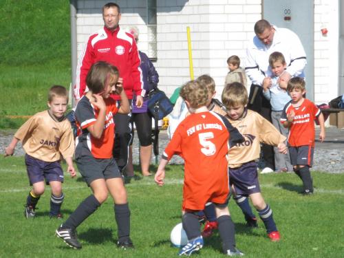 Im ersten Spiel waren die beiden Sonneberger Mannschaften auch gleich mit Eifer bei der Sache und die vielen Eltern staunten nicht schlecht über ihre Kids. Am Ende schossen nur die Westler (3) Tore, doch das sollte bei den Bamibinis Nebensache sein. Im zweiten Spiel merkte man den Lauschaer Bambinis an, dass sie bereits letztes Jahr zusammen gespielt haben. So mussten die 04er gleich sechs Mal den Ball aus dem Netz holen. Mit Spannung wurde das letzte Spiel zwischen den Westlern und Lauscha erwartet. Hin und her tobte das Geschehen und mehrfach wechselte die Führung. Am Ende trennten sich beide Teams 2:2, und allen Kindern stand die Freude über einen gelungenen Auftritt ins Gesicht geschrieben. Ein Dankeschön an alle Helfer dieser gelungenen Veranstaltung.