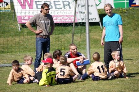 Am 6. Spieltag der Saison 2010/11 waren die G-Junioren im Sonneberger Stadion zu Gast. Bei schönstem Fussballwetter fuhren unsere kleisten Kicker zwei wichtige Siege ein. Motiviert und voller Vorfreude liefen die Spieler zum ersten Spiel, gegen den FSV 07 Lauscha auf. Schon ab der ersten Spielminute zeigten die Schützlinge von Markus Büchner und Nico Böhm eine Überlegenheit. Die Abwehr rund um Tom Keil stand wie der Fels in der Brandung, so dass Torhüter Loris Jahn nur selten retten musste. Erfreulich zu sehen war, dass die im Training erlernten Spielzüge vor allem von Stürmer Luan Beka gut umgesetzt wurden. Dieser Einsatz wurde mit vier Toren belohnt.